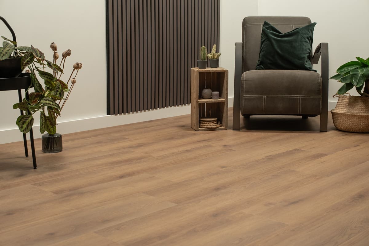 De Floer PVC – Nootdorp Nootbruin Eiken vloer is 100% waterdicht, waardoor deze vloer perfect is voor gebruik in vochtige ruimtes. Denk hierbij aan de keuken, badkamer of andere vochtige omgevingen. De waterbestendigheid maakt het onderhoud eenvoudig, zodat je vloer er altijd in topconditie uitziet. Bovendien zijn de extra brede planken ideaal voor grotere ruimtes, omdat ze een open, ruimtelijk effect creëren. De vloer past moeiteloos in elk interieur en zorgt voor een naadloze en luxe uitstraling. Met de Floer PVC – Nootdorp Nootbruin Eiken vloer haal je een duurzame, veelzijdige en luxe vloer in huis. Het is de perfecte keuze voor wie een vloer wil die jarenlang meegaat en een warme, verfijnde uitstraling biedt in elke ruimte.