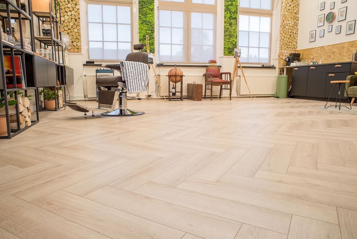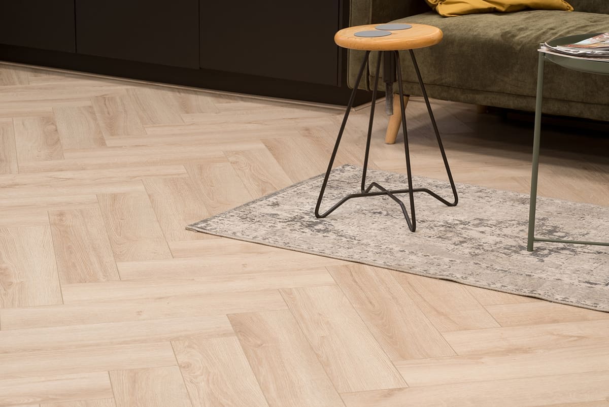 Licht eiken visgraat laminaat voor een warme uitstraling