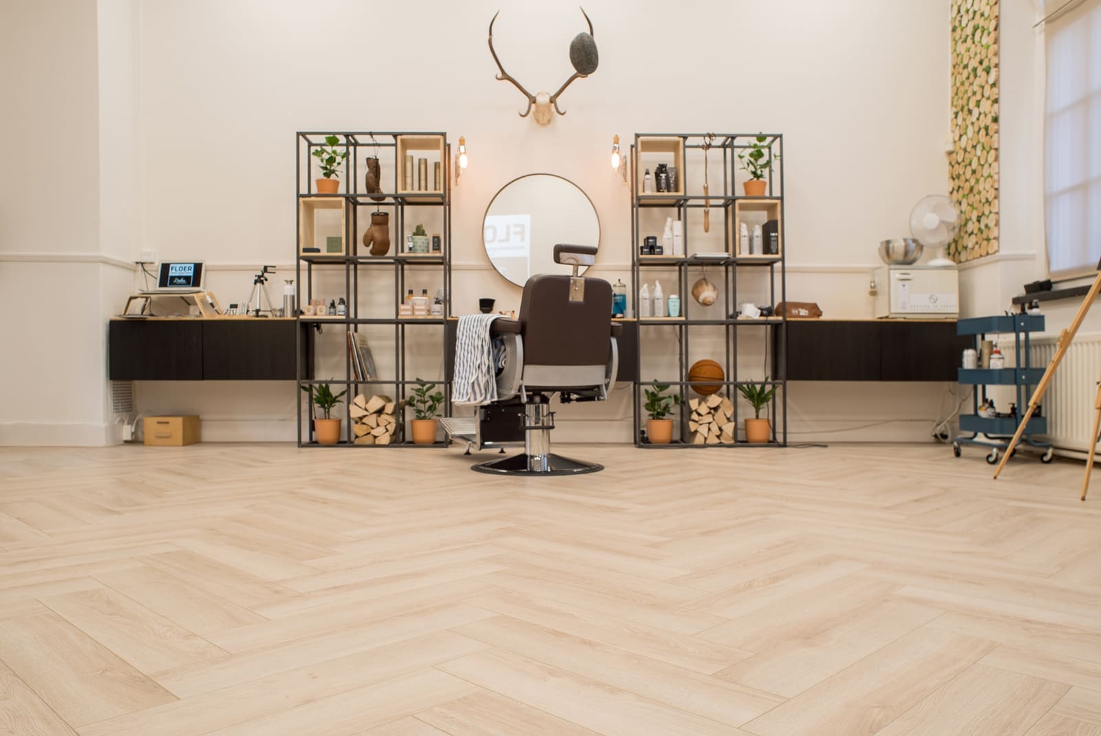 De Visgraat Laminaat vloer van Floer in de kleur Crème Eiken heeft een warme, lichte eiken kleur die tijdloos blijft. Het design van deze vloer vormt de perfecte basis voor elke inrichting, van klassiek tot modern. De visgraat planken hebben een natuurgetrouw eiken uiterlijk dat moeilijk te onderscheiden is van een echte parketvloer. Dit laminaat biedt het beste van beide werelden: de uitstraling van massief hout en het gemak van laminaat. Bovendien is het een uiterst duurzame keuze, met een sterke toplaag die jarenlang meegaat. De vloer heeft een afmeting van 64 x 14,3 x 1,2 cm en is voorzien van een luxe 4-zijdige V-groef. Dit draagt bij aan de realistische uitstraling van het visgraatpatroon. De register embossed houtstructuur zorgt ervoor dat je de eiken structuur niet alleen ziet, maar ook voelt. Dit maakt deze vloer een echte aanwinst voor je woning, met een unieke, natuurgetrouwe houtbeleving.