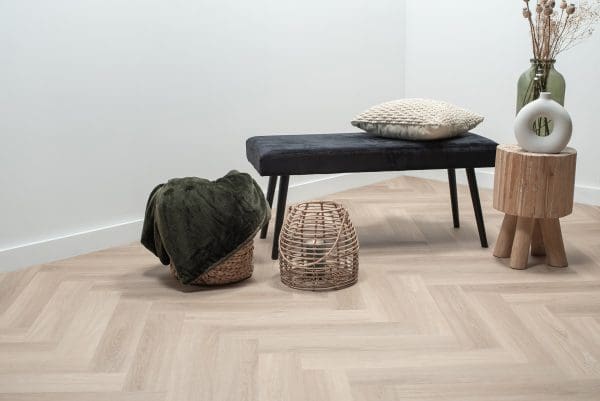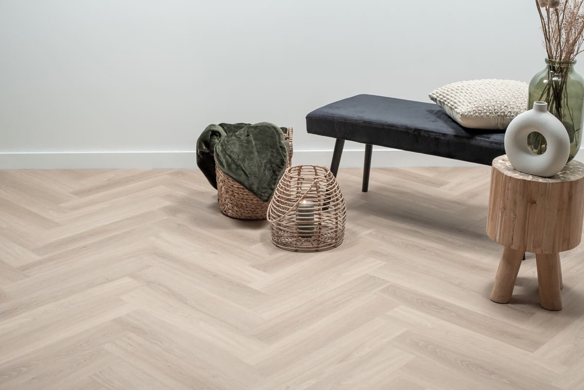 Een van de grote voordelen van de Floer Visgraat PVC Puur Eiken vloer is het gebruiksgemak. De vloer is volledig waterbestendig, wat betekent dat je je geen zorgen hoeft te maken over vlekken of vocht. Daarnaast is de vloer eenvoudig te reinigen, ideaal voor drukbezochte ruimtes zoals de woonkamer, keuken of hal. Dankzij de sterke slijtlaag van 0,55 mm blijft de vloer er jarenlang als nieuw uitzien, zelfs in intensief gebruikte gebieden. Met een fabrieksgarantie van 20 jaar ben je verzekerd van langdurig plezier van je nieuwe vloer. De vloer is bovendien afgewerkt met de innovatieve MEGAMAT technologie, die het realistische eiken design extra tot zijn recht laat komen. Deze extreem matte afwerking voorkomt reflecties van (zon)licht, waardoor de vloer een luxe, natuurlijke uitstraling krijgt. Ideaal voor moderne woningen met vloerverwarming, want de vloer heeft een lage warmteweerstand van slechts 0,019 m2K/W, wat zorgt voor optimaal comfort en energie-efficiëntie. Je kunt dus het hele jaar door genieten van een aangename temperatuur in huis, zonder dat dit ten koste gaat van je energiekosten.