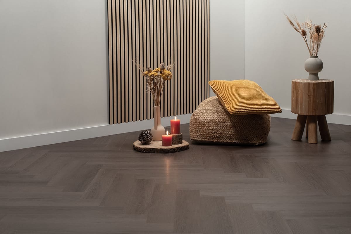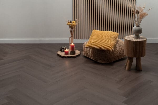 Ben je op zoek naar een visgraatvloer met de uitstraling van eikenhout, maar zonder het onderhoud? De Floer Visgraat PVC Zwart Eiken is de ideale keuze. Deze vloer combineert het luxe design van eikenhouten lamelparket met de voordelen van PVC. Hij is eenvoudig te onderhouden, heeft een voelbare structuur en is 100% waterbestendig. Met Visgraat PVC haal je gemak en schoonheid in huis.