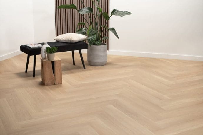 De Floer Walvisgraat Click PVC Noordkaper Natuur biedt de uitstraling van een eikenhouten vloer, maar dan met de voordelen van PVC. Het visgraatpatroon in combinatie met het natuurlijke design zorgt voor een tijdloze en elegante look. Het XL-formaat van de planken (90 cm x 15 cm) zorgt voor een indrukwekkend effect in elke ruimte. De warme, beige tint van de vloer maakt het een uitstekende keuze voor verschillende interieurstijlen. Dankzij de realistische afwerking komt de uitstraling van echt eikenhout perfect tot zijn recht, terwijl je de voordelen van PVC benut. Het vloerpatroon en de structuur versterken de natuurlijke uitstraling, waardoor deze vloer een prachtige toevoeging is aan jouw interieur.