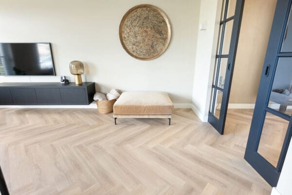 Het Floer Walvisgraat Click PVC in Orka Onbehandeld biedt de perfecte combinatie van esthetiek, duurzaamheid en functionaliteit. De vloer heeft de uitstraling van een authentieke eikenhouten vloer, maar profiteert van de talloze voordelen van klik PVC. Dit maakt de vloer een uitstekende keuze voor iedereen die op zoek is naar een luxe uitstraling zonder concessies te doen aan gebruiksgemak en onderhoud. Het visgraatpatroon in combinatie met de lichte eiken kleur geeft je ruimte niet alleen een warme, natuurlijke sfeer, maar ook een tijdloze charme die bij verschillende interieurstijlen past. Dankzij de innovatieve kliktechnologie leg je de vloer eenvoudig zelf, wat de installatie snel en probleemloos maakt, zelfs voor doe-het-zelvers zonder ervaring.
