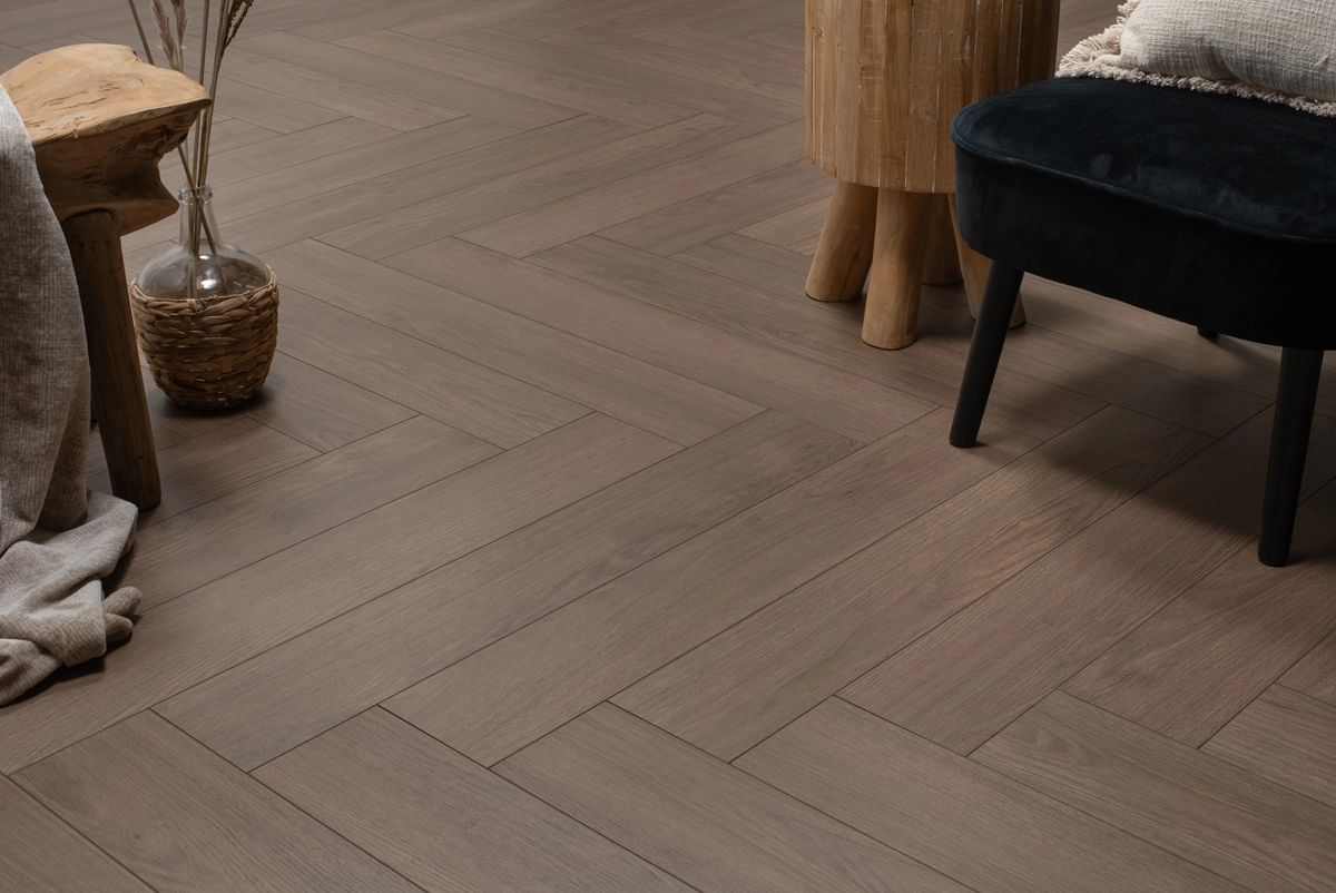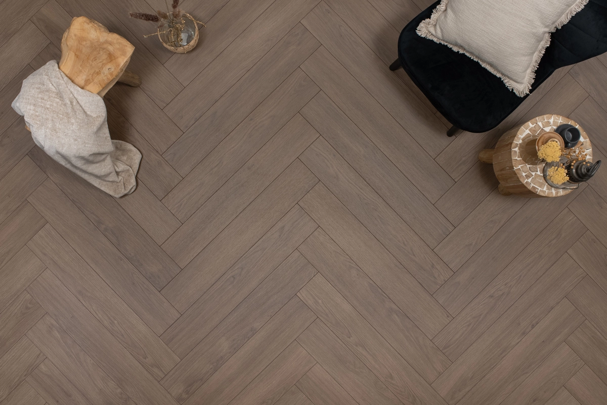 Voor een vloer die diepte en luxe uitstraalt, is het Floer Walvisgraat laminaat Cacaobruin van Smant de ideale keuze. Deze vloer heeft een rijke, cacaobruine tint die perfect bijdraagt aan een verfijnd en elegant interieur. De extra lange planken creëren een indrukwekkend ruimtelijk effect, terwijl de warme kleur je huis een gezellige en uitnodigende sfeer geeft. Dit laminaat zorgt voor een moderne, toch klassieke uitstraling die in elke kamer tot zijn recht komt.