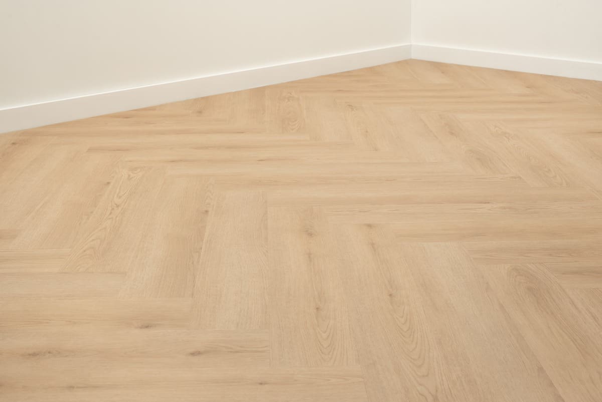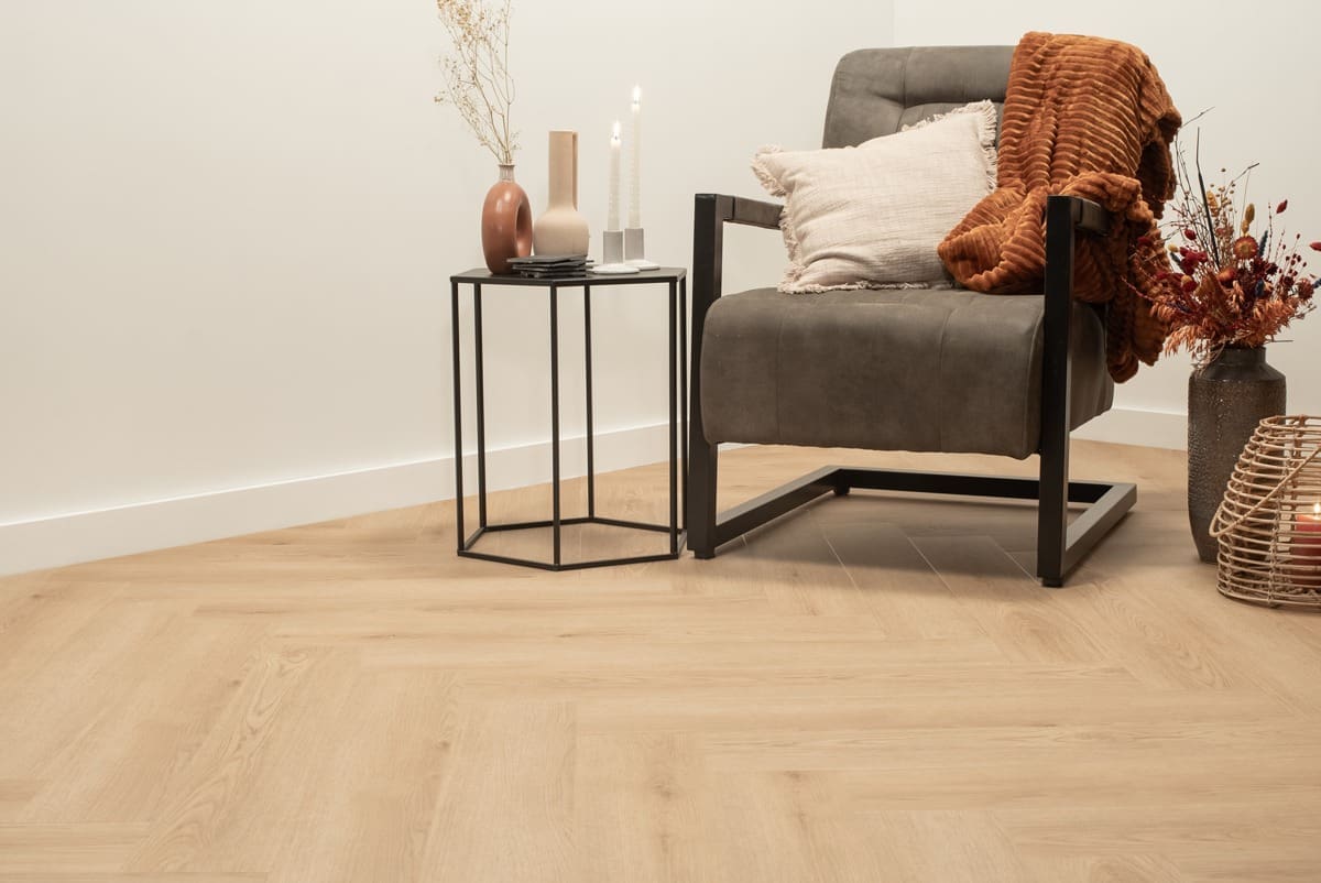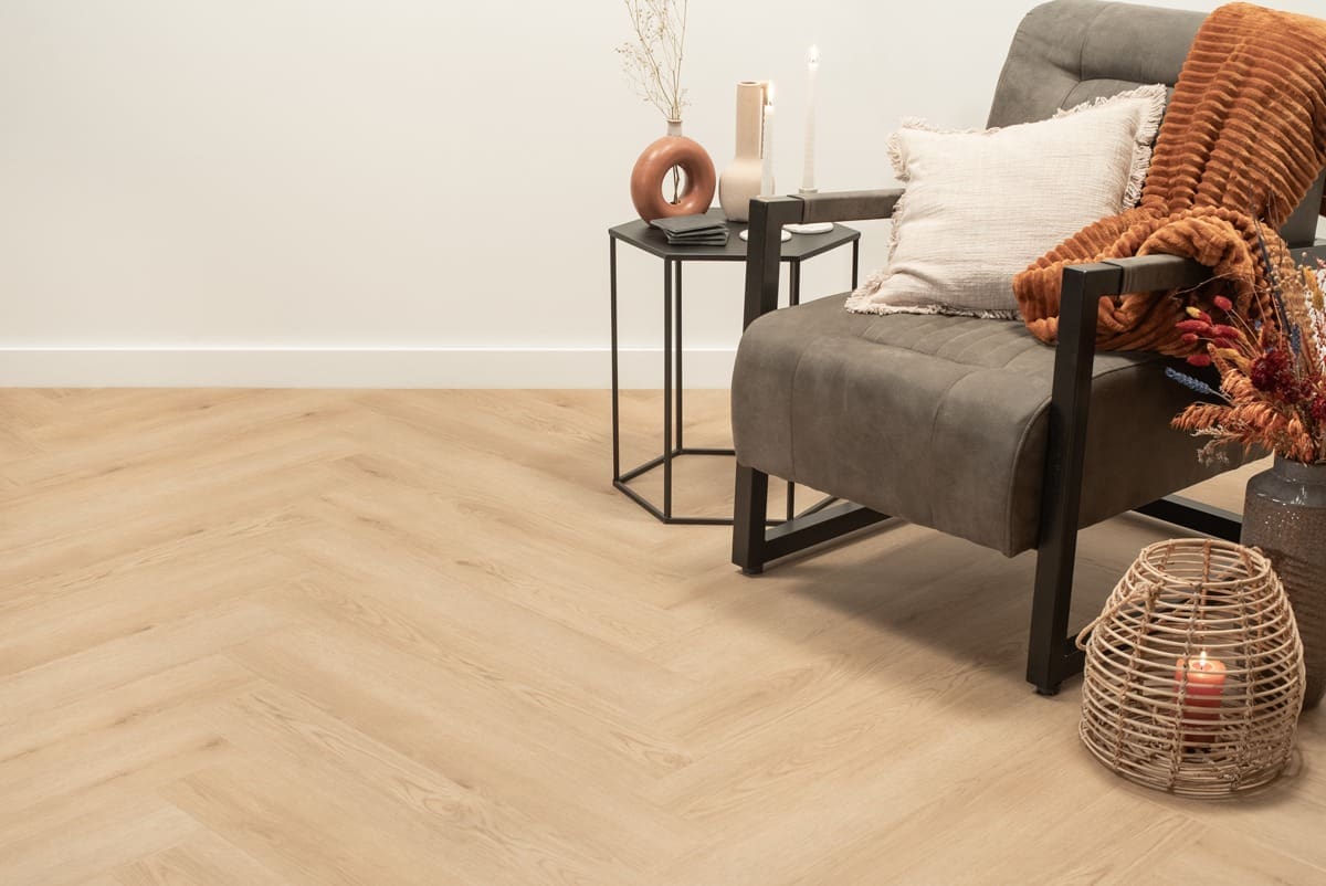 Maak kennis met de Floer Walvisgraat PVC – Bryde Bruin, een vloer die zowel groots van formaat als indrukwekkend is. Met zijn warme lichtbruine kleur biedt deze PVC vloer de authentieke uitstraling van eikenhout, gecombineerd met de vele voordelen van PVC. Het grotere formaat van de Walvisgraat PVC – Bryde Bruin maakt deze vloer breder en langer dan de standaard visgraat PVC vloeren, wat zorgt voor een luxe en moderne uitstraling in elke ruimte. De vloer is 100% waterbestendig en extreem onderhoudsvriendelijk, wat hem ideaal maakt voor gebruik in keukens, badkamers en andere vochtige omgevingen.